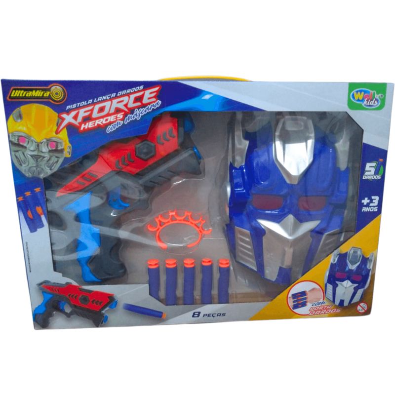 Liberte o herói que existe em você! Com a Lança Dardos c/ Máscara XFORCE 8PCS da WELLKIDS, a diversão está garantida. Atire nos alvos, evite os obstáculos e viva aventuras emocionantes. Com design moderno e máscara de proteção, você estará pronto para qualquer missão.