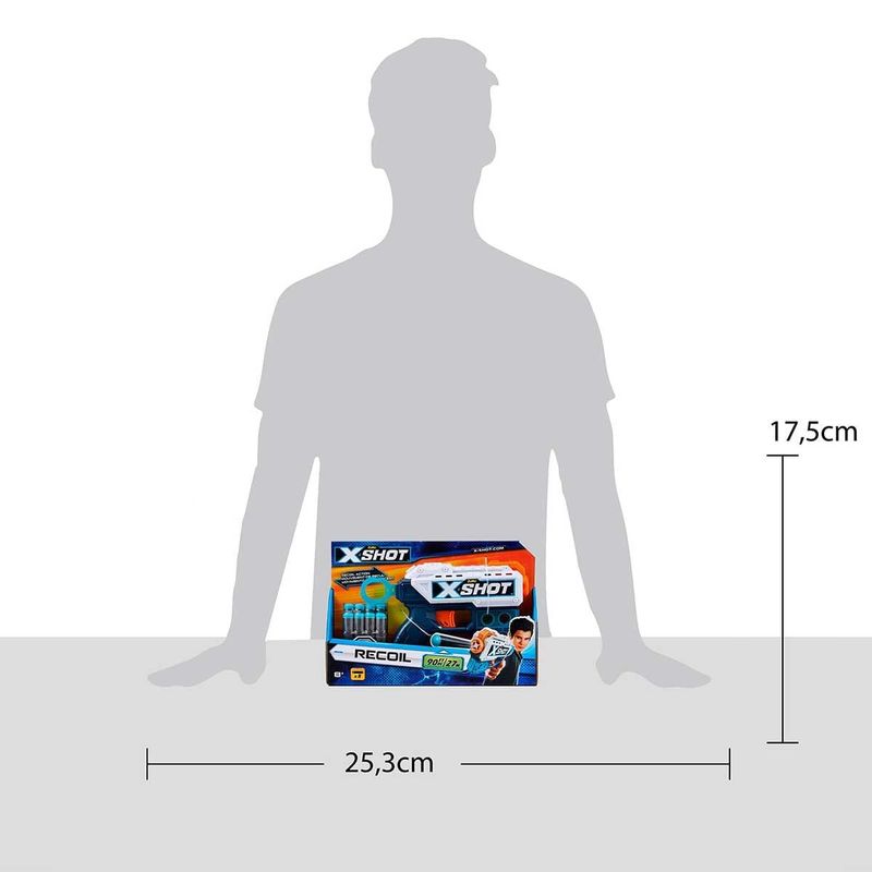 X Shot Lançador de Dardos Recoil da Candide, para a garotada treinar a mira. Conjunto inclui lançador com pente de recarga rápida e vinte e quatro dardos. Lançador de grande alcance, podendo alcançar até 27 metros de distância. Quem acertará o alvo primeiro?