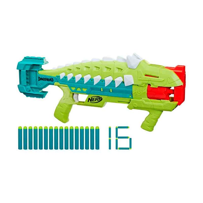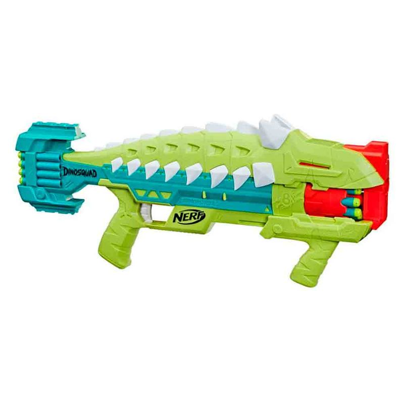 Inspirado nos mais poderosos dinossauros, este Lançador Nerf possui tambor giratório para 8 dardos Nerf Elite de espuma que podem ser lançados em sequência.
