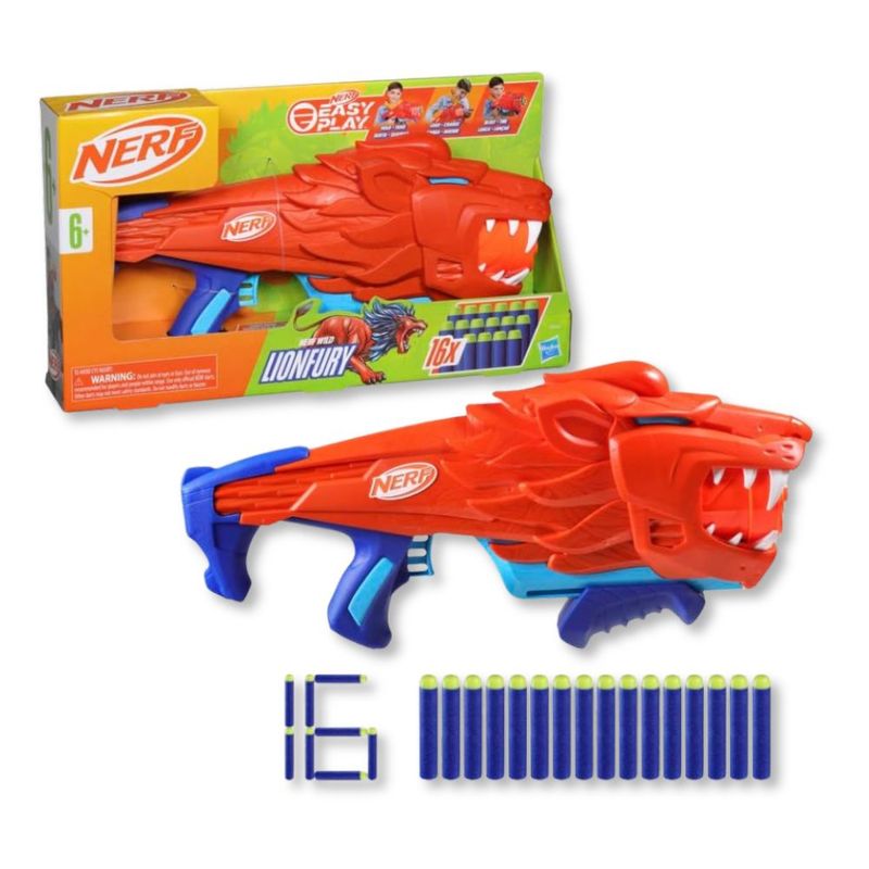 Os lançadores Nerf Junior Wild possuem design fácil de brincar para que as crianças se divirtam em aventuras dentro e fora de casa. São lançadores feitos para caber confortavelmente em mãos pequenas. São leves e podem ser segurados facilmente pelas crianças. Possuem alavanca de disparo mais fácil e leve de ativar. Os dardos Nerf são facilmente inseridos no lançador. Esses recursos permitem que as crianças se divirtam por conta própria nas aventuras Nerf. O lançador Nerf Junior Wild Lionfury tem um divertido design de leão com cores vivas e detalhes incríveis!