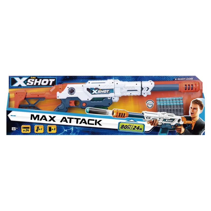 Chame os amigos para testarem suas miras ou travarem incríveis batalhas com o Lançador de Dardos - X-Shot Excel Series - Max Attack - Candide Acompanha Lançador com pente de recarga rápida e 24 dardos de espuma.