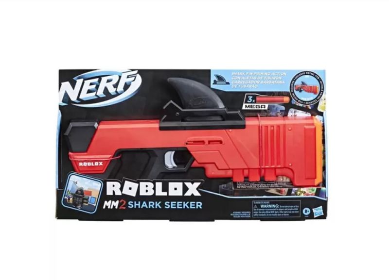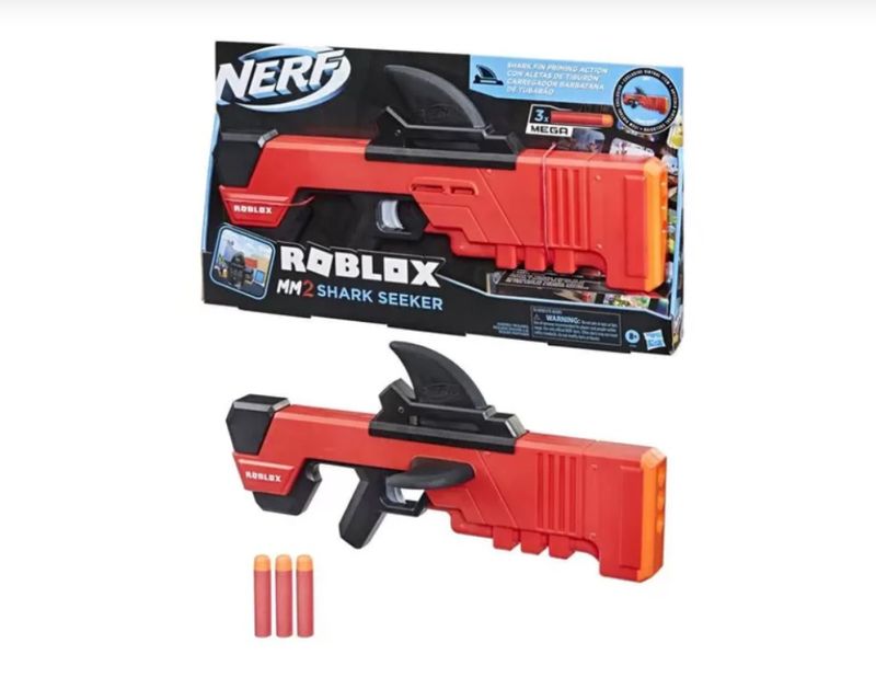 NERF ROBLOX MM2: SHARK SEEKER LANÇADOR DE DARDOS: Lançador de dardos inspirado no jogo MM2 de Roblox; EXCLUSIVO CÓDIGO DE ITEM VIRTUAL: O lançador inclui um código que permite resgatar um item virtual exclusivo em Roblox; CARREGADOR DE TUBARÃO: O lançador possui barbatana de tubarão que funciona como carregador do lançador! Basta puxar para carregar, e apertar a alavanca de disparo para lançar um dardo; INCLUI 3 DARDOS MEGA: Vem com 3 grandes dardos Mega Nerf oficiais feitos de espuma -- para brincar em ambientes externos ou internos! Este Nerf lançador Roblox MM2: Shark Seeker é inspirado no jogo MM2 de Roblox. Inclui um código especial que permite resgatar um item virtual em Roblox!* O lançador apresenta um design de tubarão incrível, incluindo uma barbatana que você move para preparar o blaster. Ele vem com 3 dardos de espuma Nerf Mega. Para começar a lançar, basta carregar 3 dardos pela frente do lançador, mover a barbatana superior para trás e para frente e pressionar a alavanca de disparo para lançar 1 dardo. Os dardos de espuma oficiais Nerf Mega são testados e aprovados para desempenho e qualidade, ótimos para jogos em lugares fechados ou abertos. Óculos recomendados (não incluídos). Não requer pilhas.