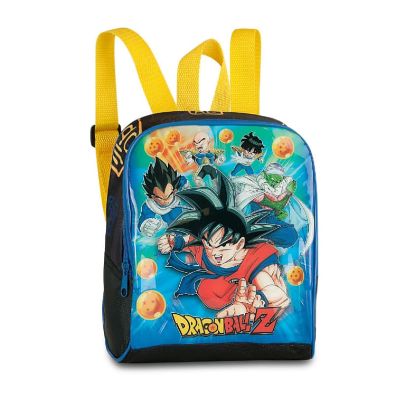 A lancheira oficial do Dragon Ball Z é confeccionada em poliéster 420D com frente em PVC.