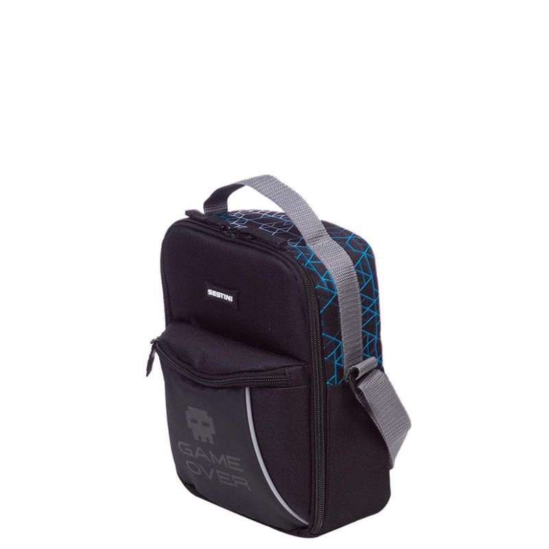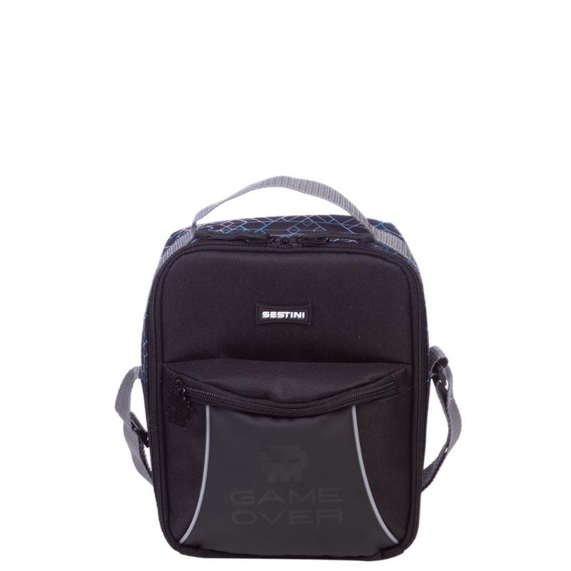 LANCHEIRA ESCOLAR SESTINI Lancheira escolar com estampa exclusiva, acompanha garrafinha e potinho, tag identificador, interior resistente a liquidos, alça carona e etiquetas personalizadas. Características Principais: Dimensões: 18 x 23 x 9cm (LxAxP). Volume: 3,3 Litros Peso: 0,2kg. Garantia contra defeito de fabricação.