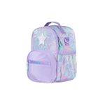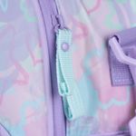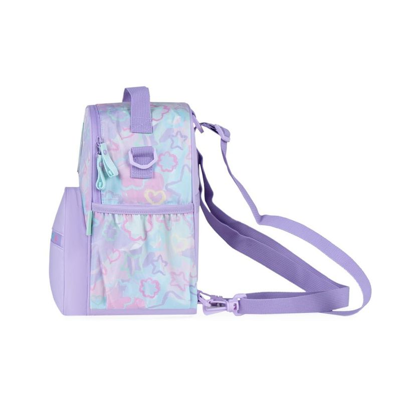 Com tons suaves de lilás e verde claro, a lancheira se destaca pela estampa exclusiva de estrelas e corações coloridos, criando um visual alegre e super atual. O aplique frontal em formato de estrela holográfica reforça o mood divertido da coleção e deixa o acessório ainda mais especial.Organização e Espaço InternoCriada para facilitar a rotina escolar e passeios, a lancheira possui compartimento térmico interno, ideal para manter a temperatura dos alimentos por mais tempo. Há espaço suficiente para potes, frutas, snacks e garrafinhas pequenas, garantindo refeições sempre práticas e bem acomodadas.