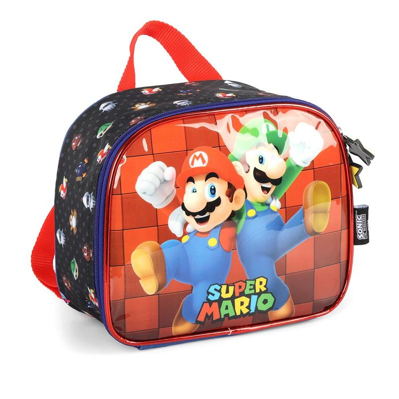 LANCHEIRA TÉRMICA LUXCEL SUPER MARIO Lancheira térmica com estampa frontal, alça de mão, alça de costas reguláveis, fechamento em zíper e etiquetas personalizadas. Características Principais: Dimensões aproximadas: 25 x 19 x 10cm (LxAxP). Garantia contra defeito de fabricação.