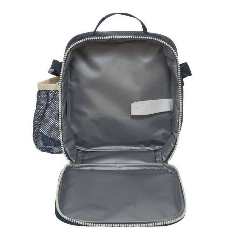 Eficiência Térmica e Organização: O interior da lancheira é forrado com material térmico, garantindo que os alimentos se mantenham na temperatura ideal por mais tempo. O espaço interno é bem distribuído, e o bolso lateral de tela é perfeito para garrafinhas de água ou suco.