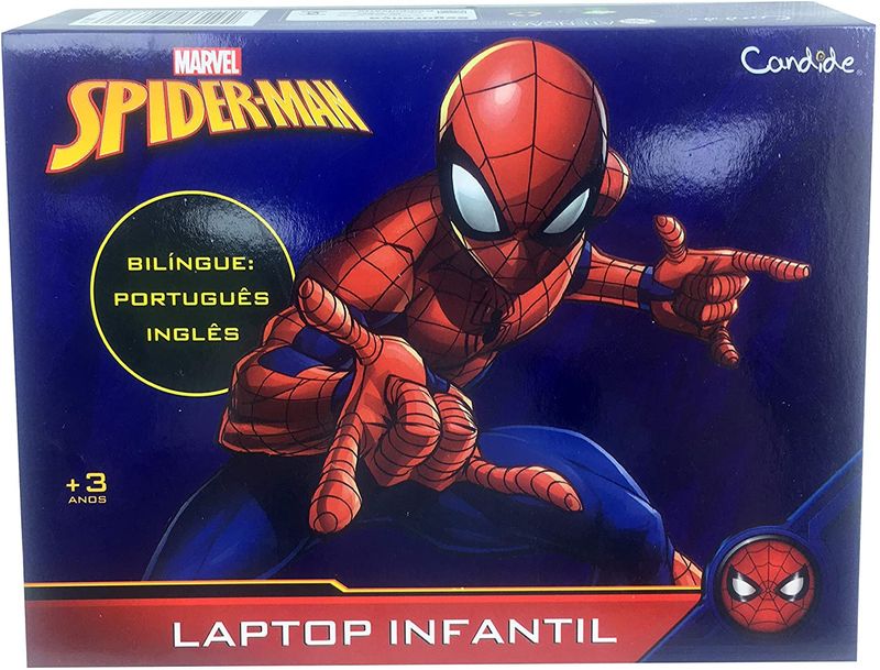 Laptop infantil bilíngue (português/inglês) com diferentes grupos de atividades, sendo eles: música, letras, palavras, ortografia, perguntas e respostas, soma e divisão. Com o laptop do Spider-Man as crianças aprendem brincando. Utiliza 3 pilhas AA não inclusas.