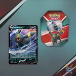 Ao adquirir uma lata de Pokémon você vai obter uma carta V de um Pokémon super poderoso e pacotes de boosters, e pode usar a lata personalizada para guardar suas cartas e acessórios do jogo!