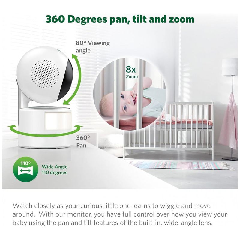 Obtenha visualização panorâmica de 360 graus e amplie até 8X para se sentir perto do bebê.