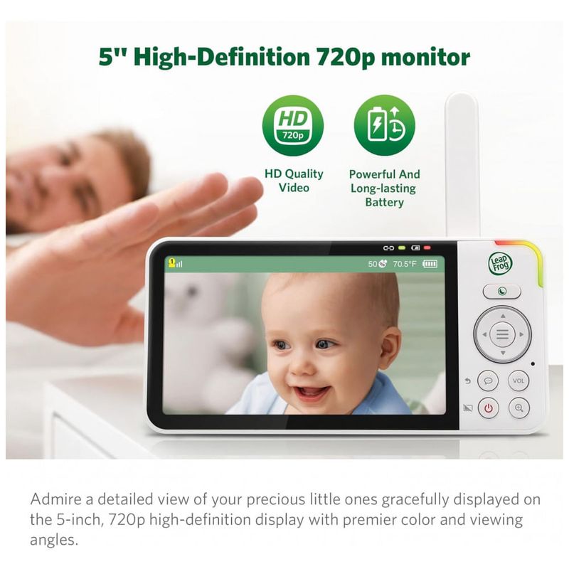 A câmara transmite vídeo de alta definição, para que possa ver claramente o seu pequeno no ecrã de visualização parental LCD a cores HD 720p de .