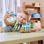 Este conjunto de brinquedos de construção repleto de recursos permite que as crianças encenem suas próprias histórias dentro deste cenário familiar de Animal Crossing. Assim como no videogame, o brinquedo do aeroporto tem um píer que leva a uma praia, uma torre de controle e um portão laranja que abre. Depois que meninas e meninos construírem o brinquedo do avião, o bilhete permite que os viajantes embarquem. As crianças giram a hélice de brinquedo do hidroavião e imaginam enviar Wilbur, o piloto, e as minifiguras Tangy para um novo destino na ilha.