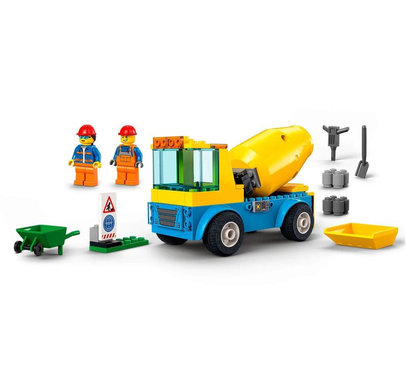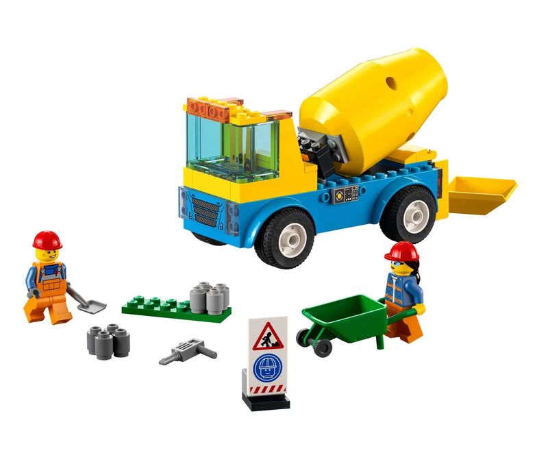 Ponha a imaginação das crianças a trabalhar com LEGO® City Caminhão Betoneira. Este veículo de construção de brincar com uma cabine de motorista que abre e betoneira giratória, traz uma britadeira de brincar, carrinho de mão e aviso de obras na rodovia. Basta acrescentar 2 minifiguras de trabalhador para horas de brincadeira criativa.