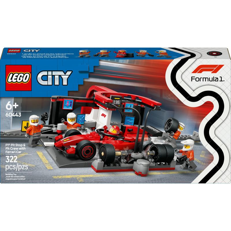 Traga a emoção das pistas às brincadeiras das crianças com o conjunto de construção LEGO City Pit Stop e Equipe de Box de F1 com Carro da Ferrari (60443) para maiores de 6 anos. Ele inclui tudo o que as crianças precisam para pit stops ultravelozes, incluindo pneus lisos novos, pistolas de rodas e uma equipe que entra em ação para trocas de pneus turbinadas com o toque de um botão. Com um carro de Formula 1 da Ferrari, além das minifiguras de um motorista e quatro membros da equipe do box, este conjunto é feito para jovens fãs de corridas.