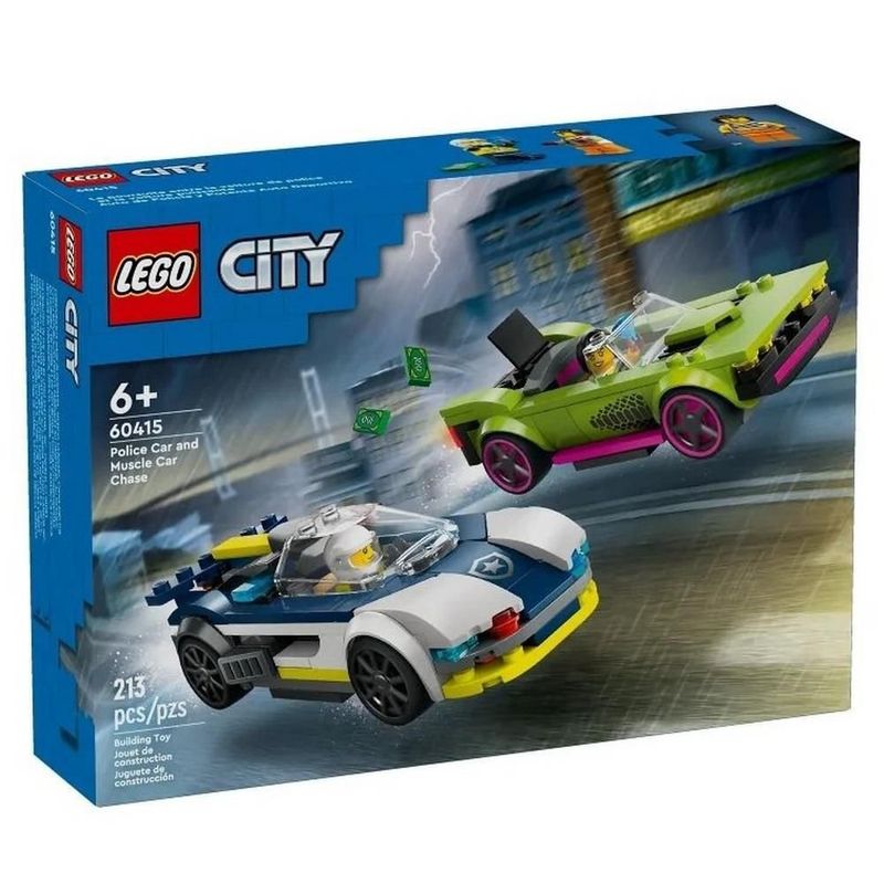 A Sua Cidade, Sem Limites! Os sets LEGO City são ideais para as crianças fãs do faz de conta. As estruturas repletas de funcionalidades, veículos realistas e personagens inspiradoras permitem às crianças explorarem o mundo através de histórias e cenários que representam a vida de uma forma divertida e emocionante.LEGO 60415 Perseguição de Carro da Polícia a Muscle Car é um dos muitos conjuntos do tema da LEGO City.