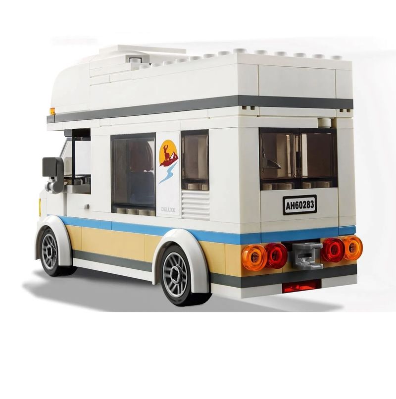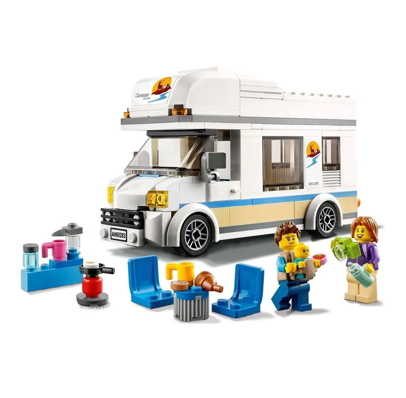 Os meninos e meninas podem viajar para onde sua imaginação os levar com este conjunto LEGO® City Trailer de Férias (60283). O brinquedo trailer vem repleto de detalhes realistas para brincadeira imaginativa e inclui um interior mobilado com kitchenette e espaço para dormir. Com as minifiguras do papai e mamãe e a figura de bebê fofinha, o cenário está pronto para aventuras infinitas no acampamento.