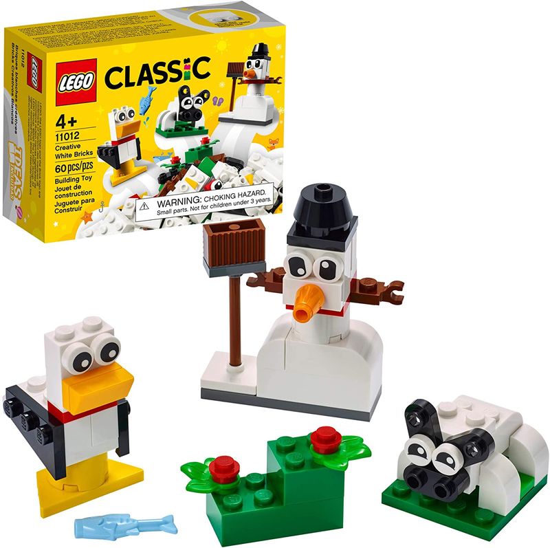 O conjunto LEGO Classic Peças Brancas Criativas (11012) está repleto de ideias e inspiração para desbloquear a criatividade das crianças. Construtores a partir dos 4 anos vão adorar as 3 ideias de brinquedos LEGO fáceis de construir. Há um boneco de neve com vassoura, uma ovelha com campo de flores e uma gaivota com peixe. E a diversão continua enquanto as crianças misturam as peças para modificar os modelos e construir suas próprias criações.