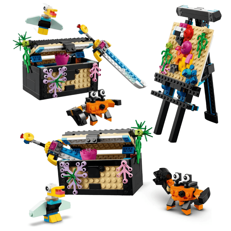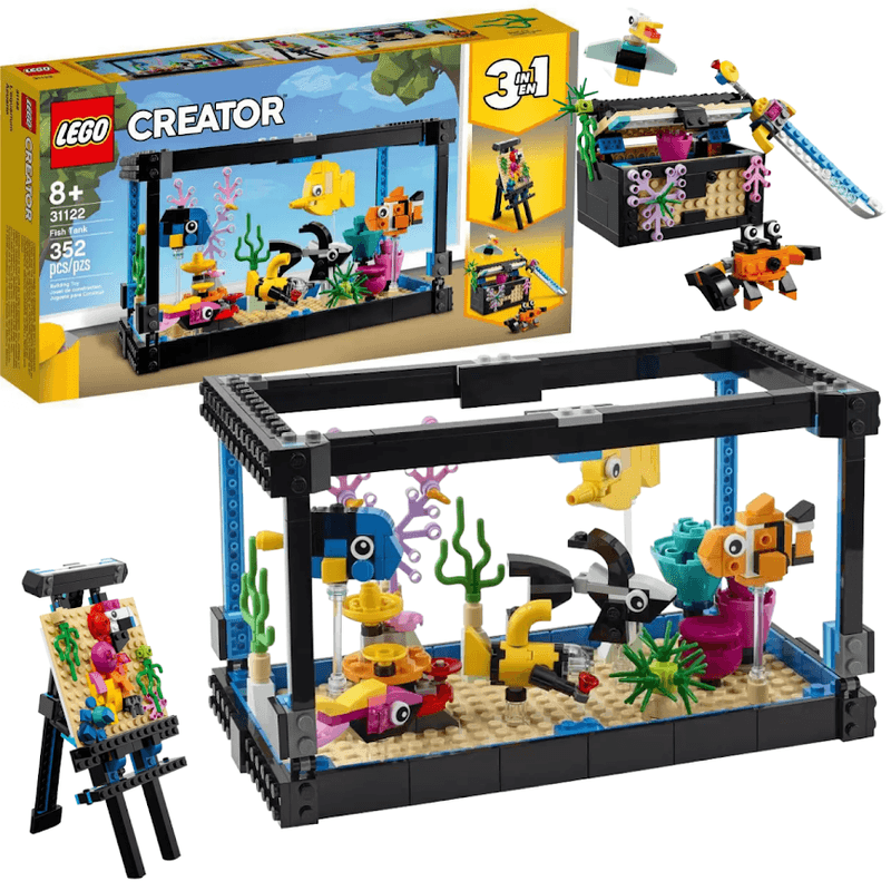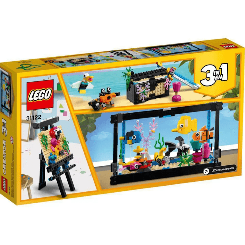 As crianças podem desfrutar 3 vezes mais da diversão com este conjunto brilhante LEGO® Creator 3em1 Aquário (31122) que contém 3 modelos em 1 – um brinquedo Aquário, cavalete e arca do tesouro.