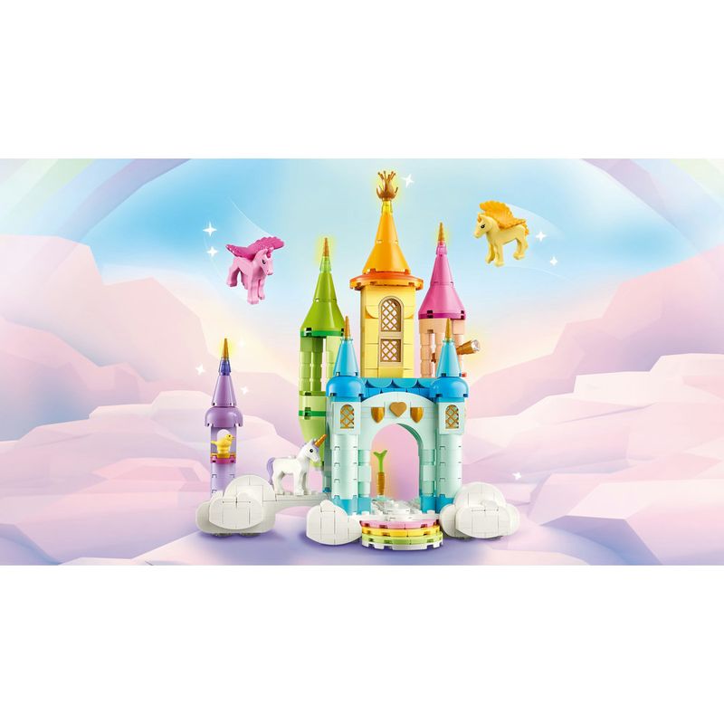 Viva aventuras em um mundo mágico de fantasia com este conjunto LEGO Creator 3em1 Castelo de Unicórnios (31175). O castelo com seis torres inclui uma casa de pássaro com um pássaro, uma escada de arco-íris, uma fonte, uma sala de diamantes, um telescópio e uma cenoura dourada. Ele também inclui um unicórnio, um Pégaso rosa, um Pégaso rosa e um unicórnio branco que as crianças usam para criar histórias incríveis.