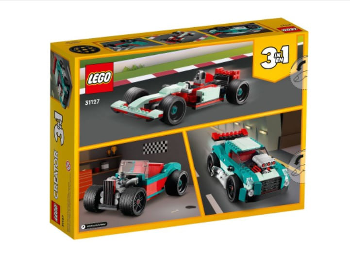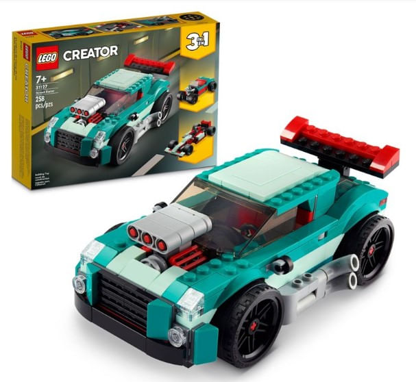Brinquedo 3 em 1 - Os fãs de carros podem desfrutar de uma ação de corrida sem fim com o conjunto de construção LEGO Creator 3 em 1 Street Racer (31127), com 3 modelos em 1: um muscle car, um carro de corrida e um hot rod