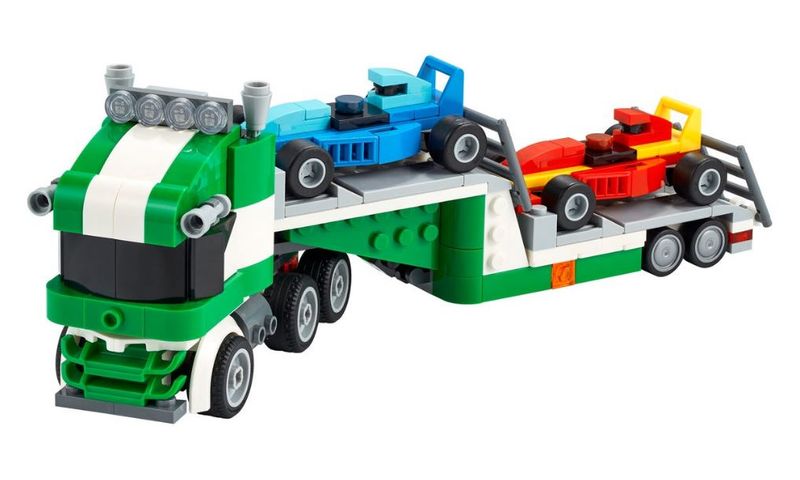 Aventuras de corrida emocionantes para os jovens construtores com LEGO® Creator 3 em 1 Transportador de Carros de Corrida (31113). Inclui um caminhão com um trailer destacável, transportando 2 carros velozes que podem ser descarregados pela rampa. Há 3 diferentes modelos para construir e brincar neste conjunto LEGO Creator 3 em 1. As crianças podem criar um caminhão e trailer com 2 carros de corrida e depois reconstruir e converter em um caminhão com guindaste e um mini rebocador. Ou podem usar as 328 peças para construir algo totalmente novo.
