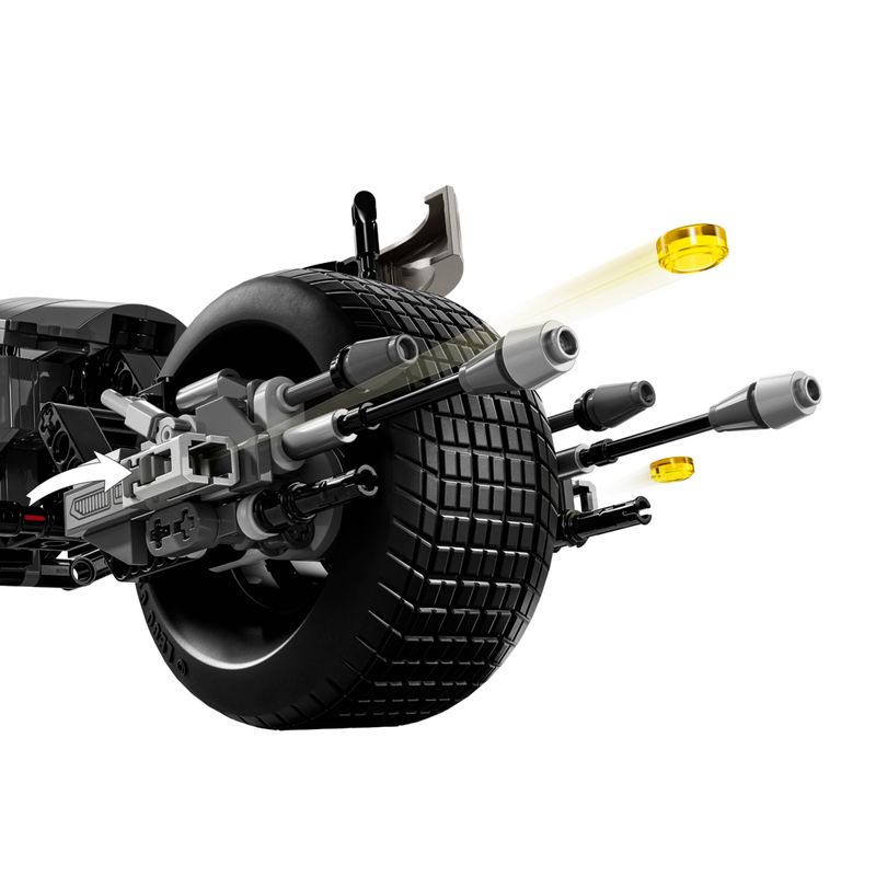 Brinquedo de aventura com precisão de filme – A figura montável do Batman™ O Cavaleiro das Trevas usa uma máscara e uma capa completa e é presa à bicicleta Bat-Pod