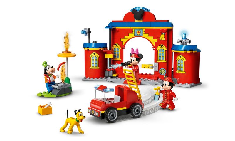 • Este conjunto LEGO® | Disney vem repleto de funções e acessórios, incluindo um prato de comida e osso para o Pluto da Disney (que aparece pela primeira vez nos conjuntos LEGO), e também ferramentas de combate ao fogo para brincar de faz-de-conta.