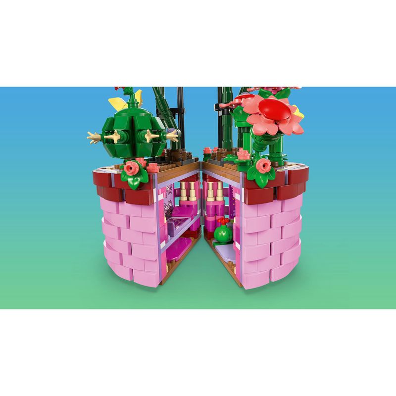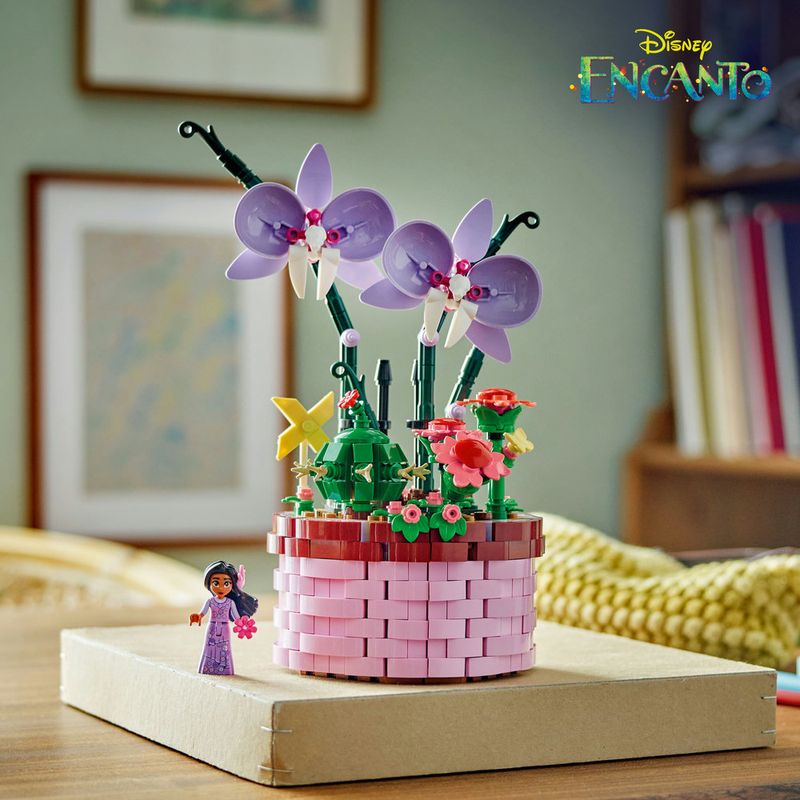 Você tem uma paixão por design? Celebre-a com o Vaso de Flores da Isabela! Abra este conjunto LEGO | Disney e crie um vaso de flores com cesto e as orquídeas favoritas da Isabela, um cacto e uma surpresa dentro. Abra o cesto para descobrir um quarto agradável com uma cama, lanterna, mais flores e uma foto da Mirabel e Isabela abraçando. Explore o espaço, depois imagine todas as histórias que você pode contar com a Isabela!