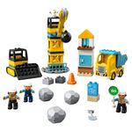 "O brinquedo LEGO® DUPLO® Construction Demolição com Bola Destruidora (10932), oferece jogo sem limites com um guindaste ajustável, caminhão basculante e escavadeira.