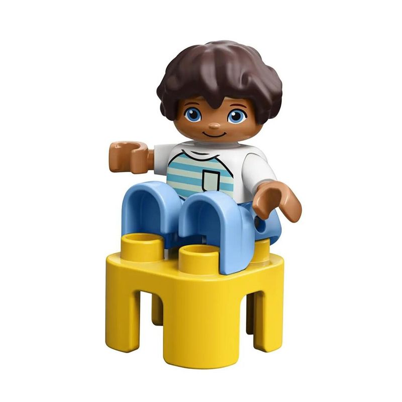 Inclui 65 peças coloridos, além de peças familiares para estimular a mente das crianças pequenas, incluindo um carro com rodas móveis, teto, janela, flores, pão, figuras de pessoas DUPLO e peças para o aprendizado dos números 1-2-3.