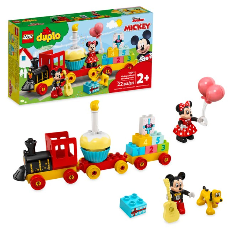 esteje o aniversário de um bebê com estilo com o conjunto encantador LEGO® DUPLO® | Disney O Trem de Aniversário do Mickey e da Minnie (10941). Repleto com atividades para desenvolvimento e incluindo personagens favoritas da Disney. Os bebês juntam-se a Mickey Mouse, Minnie Mouse e Pluto enquanto viajam no trem de aniversário, parando um bocadinho para brincar e aprender com atividades a bordo. Este conjunto de construção colorido melhora as habilidades de motricidade fina enquanto as crianças constroem o trem e empilham as peças de números; inspira a criatividade enquanto elas decoram os vagões e desenvolvem habilidades sociais interagindo com as adoráveis personagens Disney.