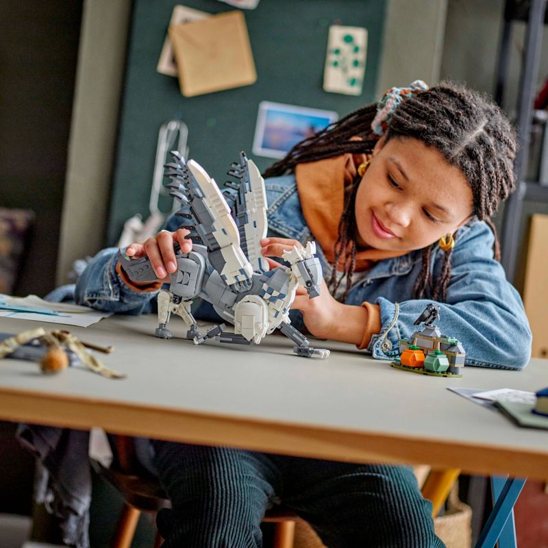 Brinquedo LEGO® Harry Potter™ Buckbeak™ para exibição lúdica – Uma ideia de presente de fantasia para crianças, apresentando a maior figura LEGO construída em peças do adorado Hipogrifo, Buckbeak, para encenar histórias de Harry Potter