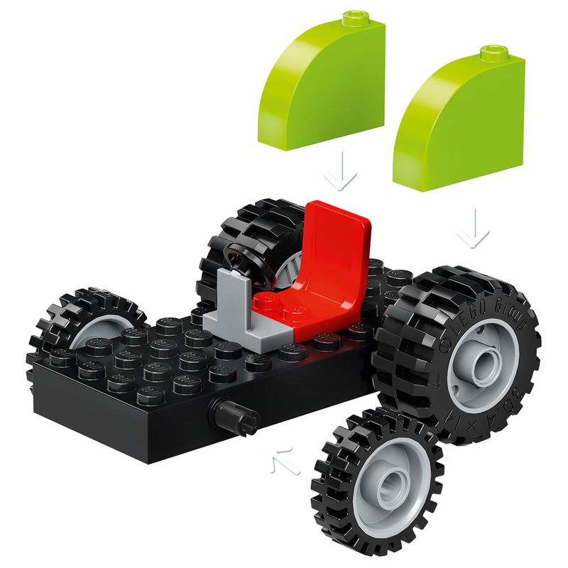 -Muitos detalhes para prolongar a brincadeira. O conjunto tem um palheiro e trator com Peças iniciais para ajudar a dar início rápido à construção, ficando assim mais tempo para a diversão, e também 2 minifiguras e 4 figuras de animais!
