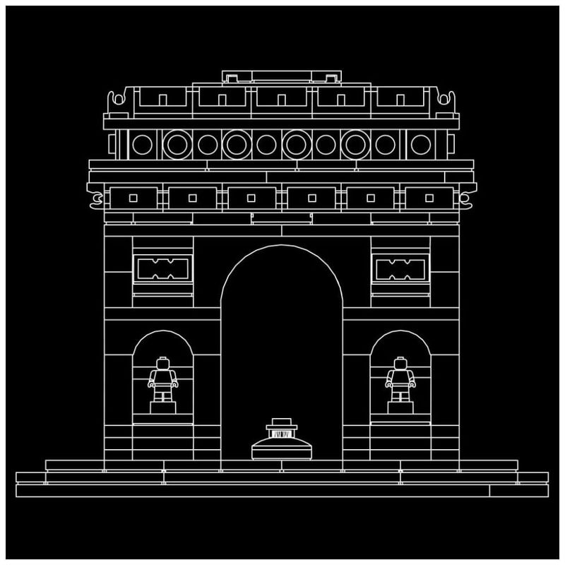 Inclui uma placa dourada para representar o Túmulo do Soldado Desconhecido, uma interpretação LEGO da chama eterna e uma placa decorativa Arc de Triomphe