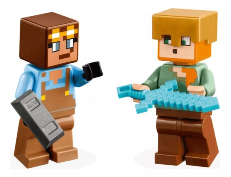 - Este brinquedo de jogo montável para crianças inclui 2 figuras conhecidas: Alex, o herói de ação do Minecraft, com seu escudo e espada de diamante, e o industrioso Armeiro.