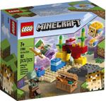 Dê vida no mundo real a Minecraft, o imensamente popular jogo para crianças online, com o conjunto prático Lego Minecraft O Recife de Coral 21164. Com peças Lego infindavelmente reconfiguráveis, a diversão de construção criativa nunca para. Autêntica ação Minecraft em uma aventura subaquática. As crianças juntam-se à figura popular e audaciosa Alex, quando ela mergulha no oceano de Minecraft para procurar o tesouro escondido por entre o colorido recife de coral. O conjunto está repleto de características do imaginário Minecraft desde o peixe-balão que passa até ao aparecimento surpresa da arca do tesouro. E, tal como em todas as histórias excitantes Minecraft, há um emocionante combate de espadas com um zombie afogado. Imagens meramente ilustrativas