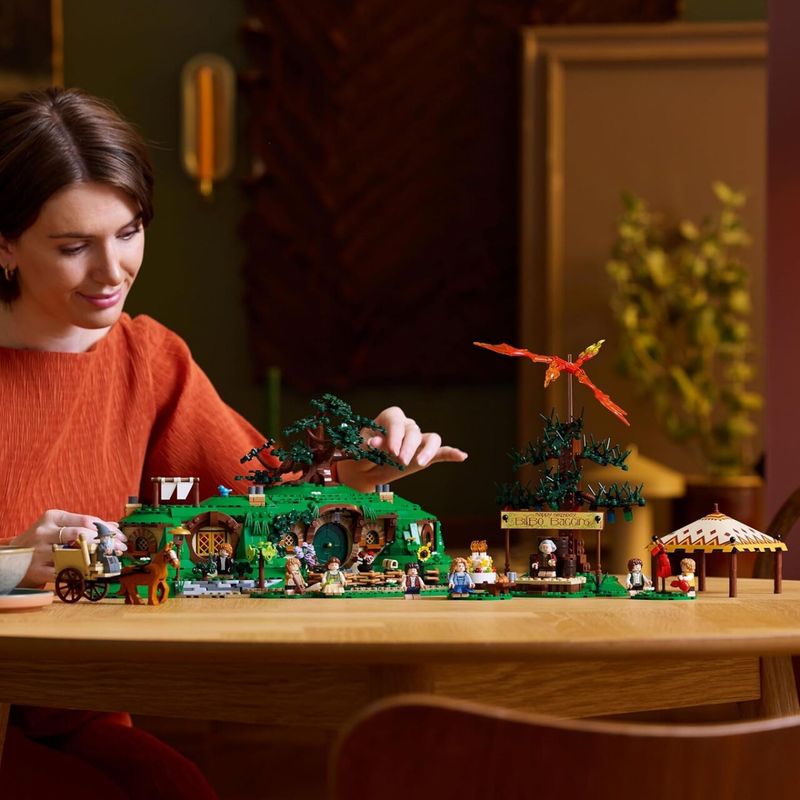 -Conjunto LEGO Icons de memorabilia do cinema – Viaje à encantadora toca do hobbit Bilbo Bolseiro na região do Condado da Terra-média com o conjunto de construção LEGO Icons O Senhor dos Anéis: O Condado para adultos