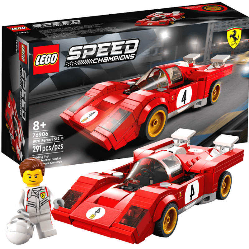Colecione, brinque e exiba As crianças e fãs de carros exploram o 1970 Ferrari 512 M enquanto o constroem, antes de exibirem seu trabalho ou se juntarem a amigos para ação de corrida Speed Champions