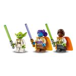 • 3 minifiguras LEGO® Star Wars™ – Lys Solay e Kai Brightstar com pernas de tamanho médio e o Mestre Yoda com pernas pequenas. Cada personagem inclui um sabre de luz para treinamento Jedi