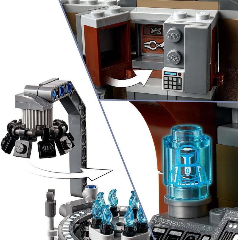 A forja tem muitos elementos acessórios para brincadeiras criativas, incluindo um capacete Mandaloriano extra, 3 barras de beskar e 2 jetpacks