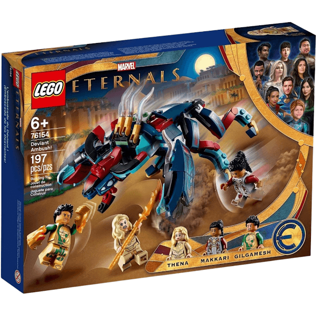 Este emocionante conjunto LEGO® Marvel A Emboscada do Deviant! (76154) coloca a ação e aventura do filme da Marvel nas mãos de jovens super-heróis, enquanto ajudam 3 dos Eternos a enfrentarem um malévolo Deviant.