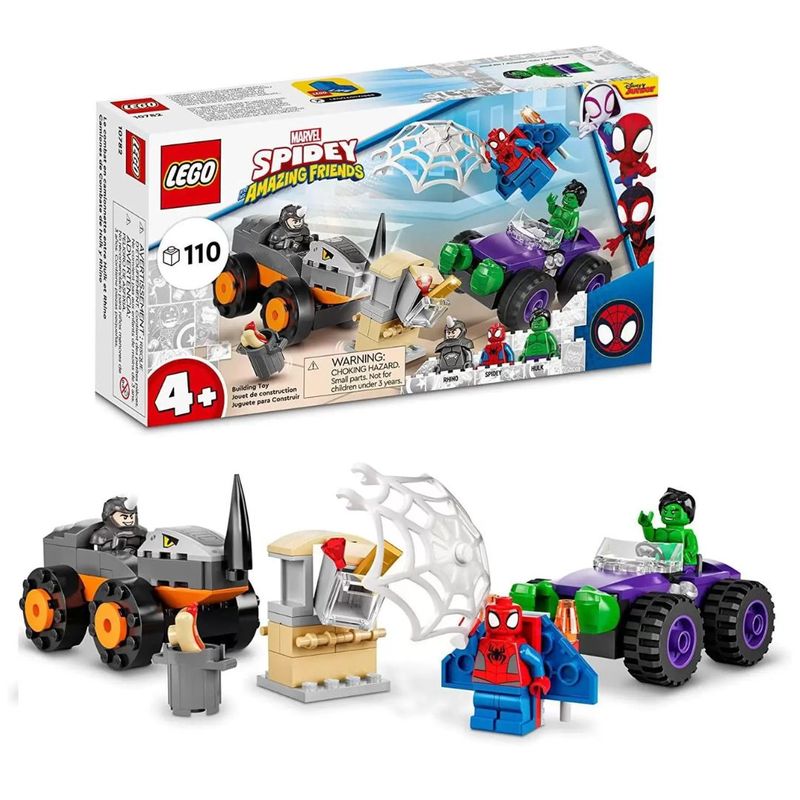 O brinquedo de construção LEGO® Marvel Homem-Aranha e seus Incríveis Amigos: Confronto Hulk contra Rinoceronte coloca os super-heróis a partir de 4 anos ao volante, enquanto correm para salvar o dia. As crianças recriam cenas inspiradas pela popular série de TV do canal Disney+ enquanto ajudam o Homem-Aranha e Hulk a impedir que Rinoceronte assalte o banco. As crianças vão adorar os carros de combate neste conjunto de brinquedo para construir colecionável. Cada um dos veículos gigantes exibe detalhes incríveis – o caminhão do rinoceronte tem um chifre para forçar, enquanto que Hulk tem um par de punhos enormes prontos para combate esmagador.