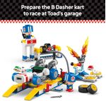 Deixe as crianças brincarem de equipe de box na garagem do Toad e prepare um B Dasher para a ação de corrida com este conjunto de brinquedo personalizável LEGO® Super Mario™: