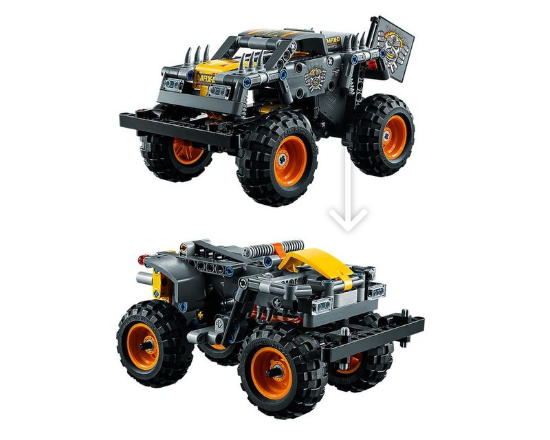 Prepare-se para a vitória na arena Monster Jam® com este conjunto grandioso LEGO® Technic Monster Jam Max-D®. Ponha o Max-D à prova, recriando a velocidade e acrobacias de um dos caminhões gigantes mais fabulosos do mundo. Observe o aspeto selvagem famoso do Max-D com espigões e representações gráficas de fogo. Use a função «pull-back» puxando para trás para enviar o caminhão a alta velocidade. Quando estiver pronto para experimentar algo de novo, reconstrua o caminhão e transforme-o em um quadriciclo.