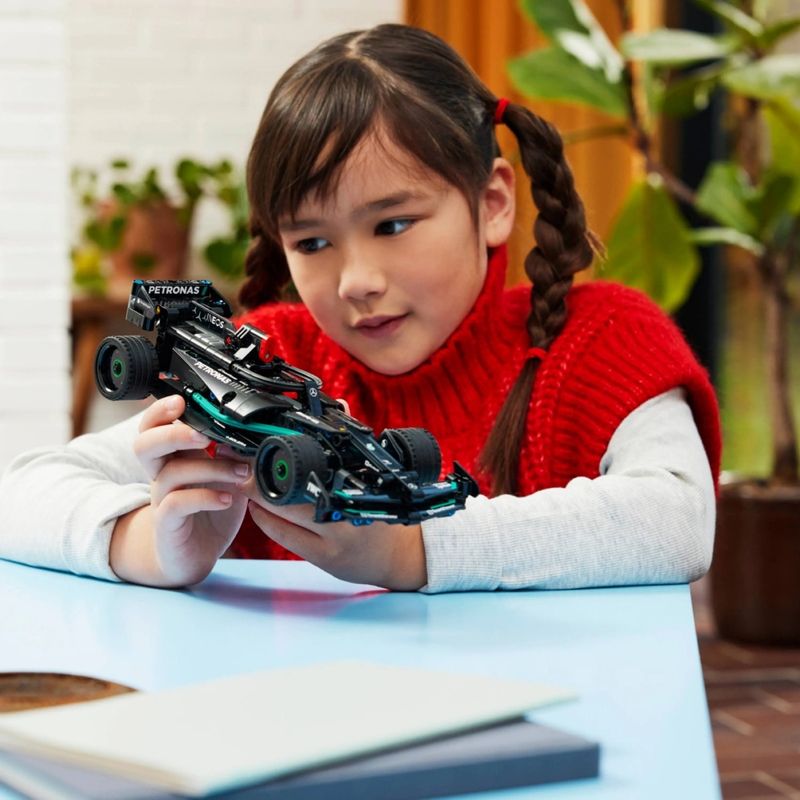 Brinquedo de carro de corrida com ação pull-back para crianças a partir de 7 anos – Este modelo LEGO® Technic™ Mercedes-AMG F1 W14 E Performance Pull-Back para meninos e meninas tem detalhes de corrida divertidos para encantar os jovens fãs de corrida
