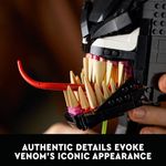 Os fãs dos filmes de Venom e Spider-Man vão desfrutar de uma gratificante experiência de construção, enquanto recriam as características autênticas do arrepiante simbionte alienígena. As maxilas com dentes semelhantes a um punhal, a língua comprida e torcida e o sobrolho preto, baixo, combinam para criar uma peça de exposição. Com uma elegante placa robusta na base, este modelo notável vai ainda mais chamar a atenção exposto ao lado de outras criações LEGO de revistas em quadrinhos.