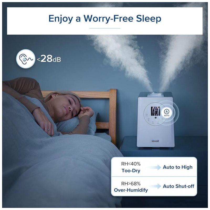 Operação ultra silenciosa os níveis de ruído quase silenciosos e um recurso de desligamento da tela ajudam você a dormir a noite toda enquanto o umidificador funciona.