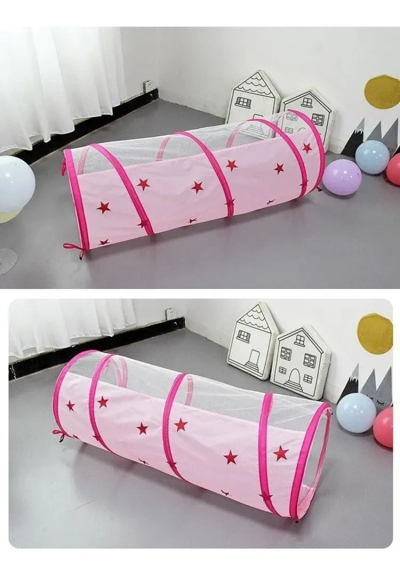 Junte as 3 partes para formar uma super barraca ou brinque com as partes separadas. Ela vem com uma cestinha de basquete e você pode adicionar bolinhas de plástico (não inclusas) para deixar ainda mais divertido. Ela é dobrável, fácil de armar e não ocupa muito espaço na hora de guardar.