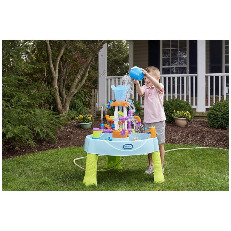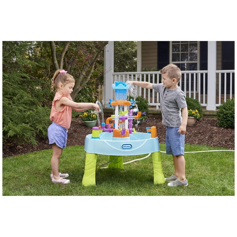 A mesa de água divertida do Little Tikes flui permite que várias crianças brinquem ao mesmo tempo