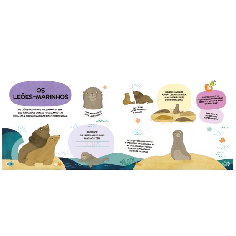 Detalhes sobre as baleias, leões-marinhos e golfinhos são apresentados às crianças entre três e cinco anos ao longo das narrativas. Uma caneta com apagador acompanha cada livro, assim como personagens destacáveis que, ao ser encaixados, emitem sons característicos.